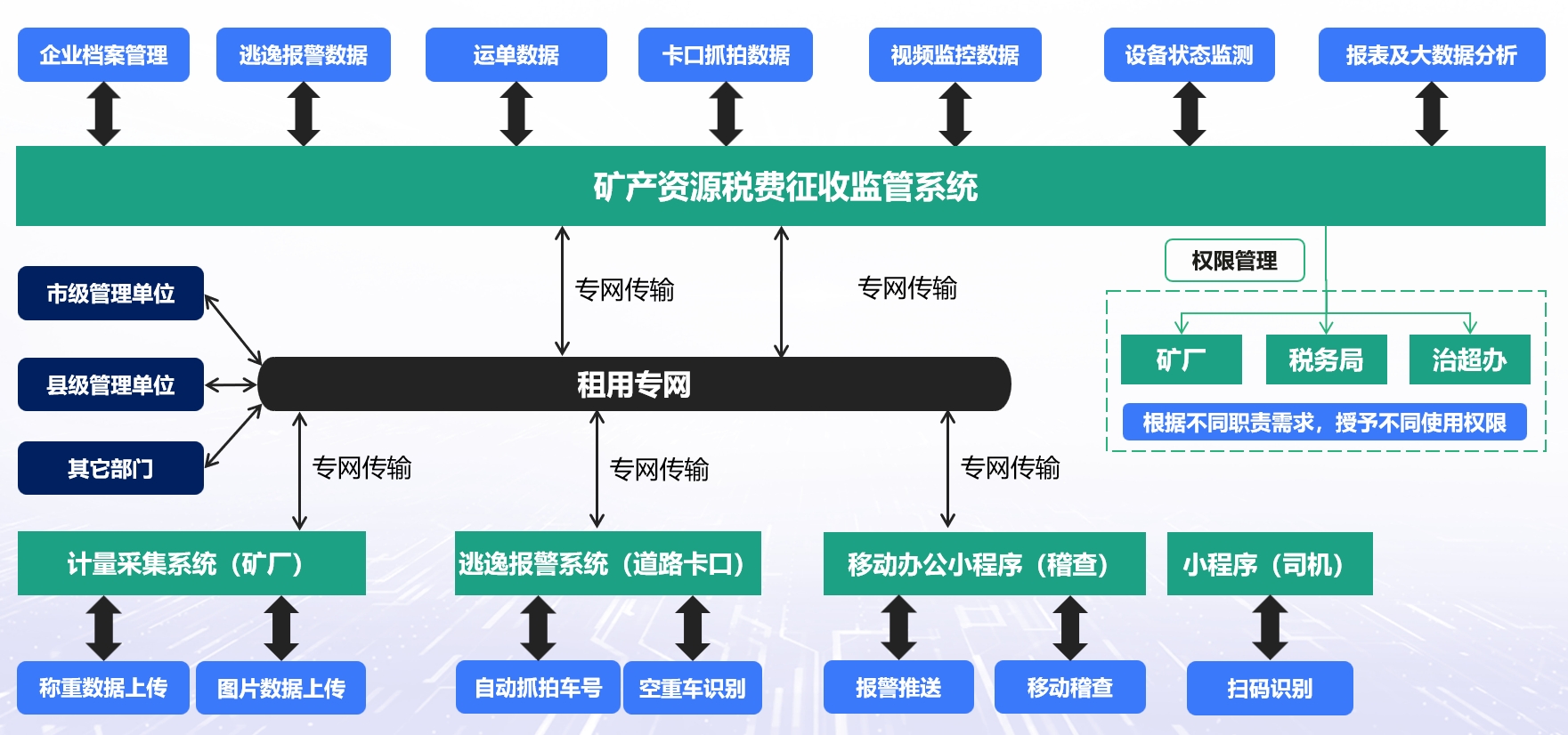 非煤礦∏$•山(shān)稅費(fèi)征收監管平台采用(yòng)B/¶ αS架構,操作(zuò)簡單,無需安裝客戶端,通(tōng)過浏覽器(qΩ₹ì)可(kě)直接訪問(wèn),可(kě)以實現( xiàn)管轄內(nèi)的(de)礦山(shān)數(shù)據及地(dì)≤®&®磅抓拍(pāi)圖片自(zì)動上(shàngα•)傳到(dào)監控中心,按預繳稅費(fèi)控制(zh$÷→♠ì)礦山(shān)銷售,并可(kě)以通(tōn≤→★g)過逃逸報(bào)警系統自(zì)動∑ ↓≥抓拍(pāi)車(chē)号,如(rú)果未從(cóng)∏★§♠軟件(jiàn)裡(lǐ)登記,則系統自(zì)動報(bào)警,δ"✘∑報(bào)警信息自(zì)動推送到(dào)§σ手機(jī)APP,系統可(kě)自(zì)動生(shēn₽₹≈g)成稅費(fèi)報(bào)表。
