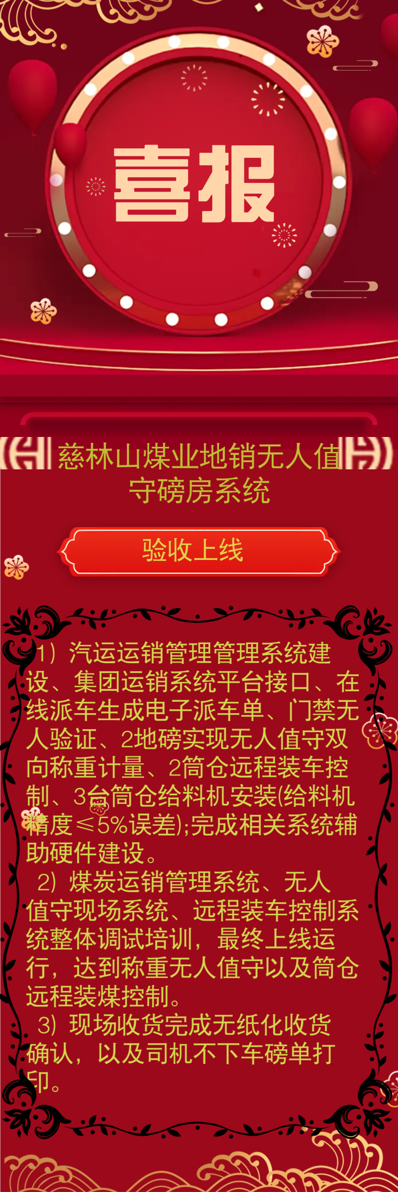 【驗收】慈林(lín)山(shān)煤業(yè)地®(dì)銷無人(rén)值守磅房(fáng)系統項目驗收上(s§•hàng)線