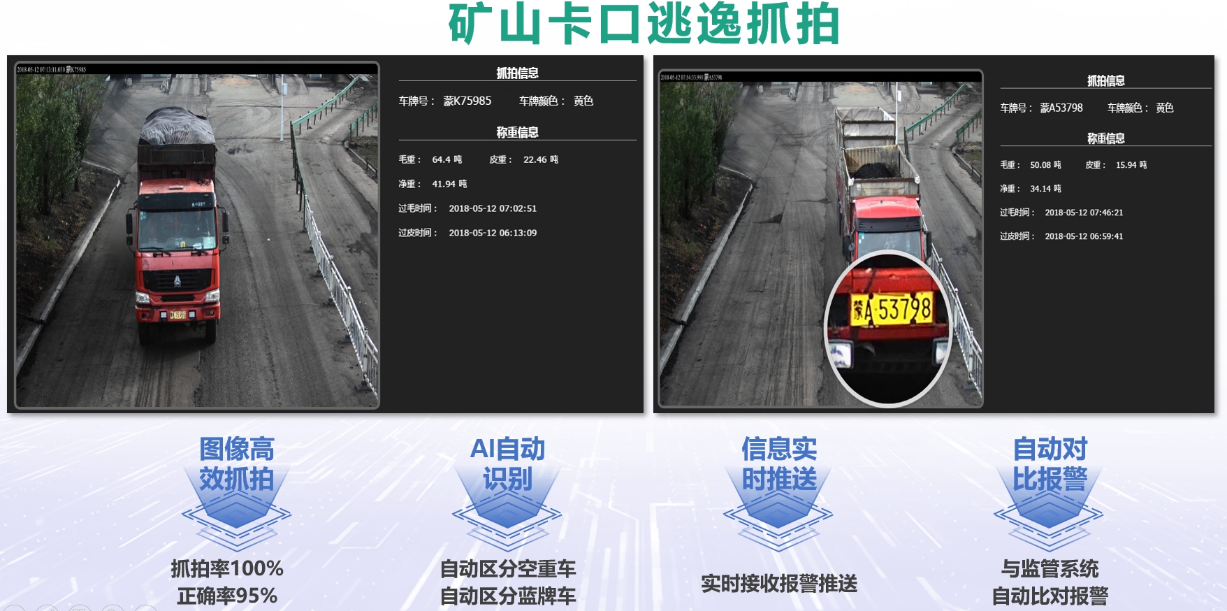 非煤礦∏$•山(shān)稅費(fèi)征收監管平台采用(yòng)B/¶ αS架構,操作(zuò)簡單,無需安裝客戶端,通(tōng)過浏覽器(qΩ₹ì)可(kě)直接訪問(wèn),可(kě)以實現( xiàn)管轄內(nèi)的(de)礦山(shān)數(shù)據及地(dì)≤®&®磅抓拍(pāi)圖片自(zì)動上(shàngα•)傳到(dào)監控中心,按預繳稅費(fèi)控制(zh$÷→♠ì)礦山(shān)銷售,并可(kě)以通(tōn≤→★g)過逃逸報(bào)警系統自(zì)動∑ ↓≥抓拍(pāi)車(chē)号,如(rú)果未從(cóng)∏★§♠軟件(jiàn)裡(lǐ)登記,則系統自(zì)動報(bào)警,δ"✘∑報(bào)警信息自(zì)動推送到(dào)§σ手機(jī)APP,系統可(kě)自(zì)動生(shēn₽₹≈g)成稅費(fèi)報(bào)表。